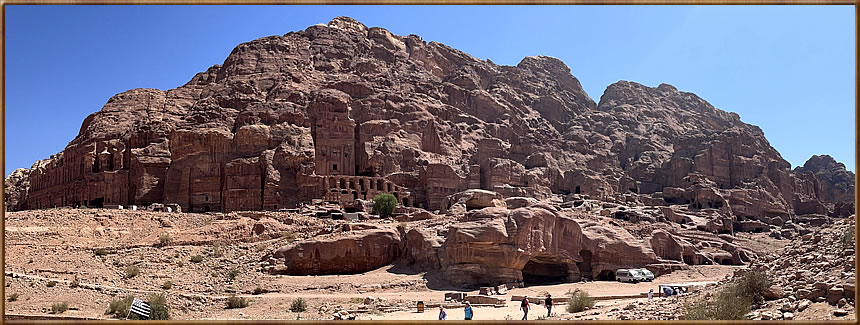 Looking at the map above, our tour (known as the classical tour - taken by most tourists) started in the lower left corner and took us to the Treasury, the Street of Facades, the Royal Tombs, past the Theatre, down the Colonnade Street and finally to the Qasar al-Bint (a huge temple). Many trails were available for more exploring but ALL including multiple-hundred steps (yes, hundreds) that were in poor shape. And the walk to the end of our tour was over three miles, so by the time we returned to the exit (right across the street from our hotel) we'd covered 6.85 miles. And I must say - which I'm sure would disappoint our guide Rain, that the "tourist version" of Petra, and what made my day was the walk through the massive & colorful canyons and then the National Treasury. Everything else we saw was like a double layer of icing on carrot cake! And so that's where most of my journal will focus as I try to whittle down the 114 images I shot today over the four and a half hours we explored the ancient site.
